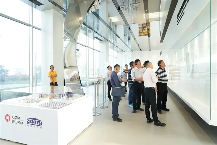 Ο Πρόεδρος Lin Boqian και η αντιπροσωπεία του επισκέφτηκαν αρχικά την εκθεσιακή αίθουσα της ιστορίας ανάπτυξης της Quangong Co., Ltd. και μέσω γραφικών πινάκων προβολής, υλικού βίντεο και φυσικών εκθεμάτων, κατανόησαν πλήρως τον αγώνα της εταιρείας από την ίδρυσή της μέχρι να γίνει ηγέτης του κλάδου. Ο υπεύθυνος της Quangong παρουσίασε λεπτομερώς τις καινοτόμες ανακαλύψεις που έχει κάνει η Quangong Co., Ltd. στον τομέα του εξοπλισμού μηχανών τούβλου για περισσότερα από 40 χρόνια, καθώς και την εταιρική φιλοσοφία "η δεξιοτεχνία δημιουργεί ποιότητα και η τεχνολογία οδηγεί το μέλλον". Ο Πρόεδρος Lin Boqian εκτίμησε ιδιαίτερα τα επιτεύγματα της Quangong Co., Ltd. όσον αφορά την επιμονή στην τεχνολογική έρευνα και ανάπτυξη και την προώθηση των αναβαθμίσεων της βιομηχανίας.