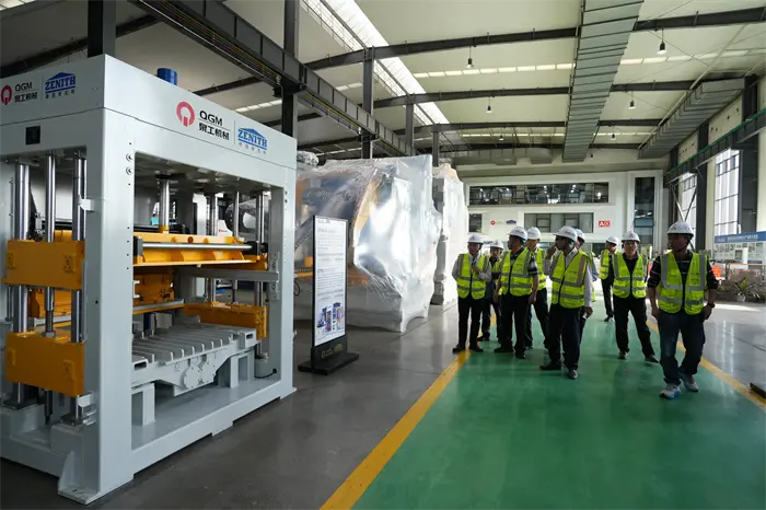 Στη συνέχεια, οι καλεσμένοι μετακόμισαν στον χώρο προβολής δειγμάτων τούβλων και παρακολούθησαν διάφορα υψηλής ποιότητας διαπερατά τούβλα, τούβλα πεζοδρομίου, μπλοκ και άλλα προϊόντα που παράγονται από εξοπλισμό QGM και εξέφρασαν μεγάλο ενδιαφέρον για τα τεχνολογικά επιτεύγματα της εταιρείας "ανακύκλωση στερεών αποβλήτων". Στον χώρο της έκθεσης εξοπλισμού κατασκευής τούβλων, ο Πρόεδρος Lin Boqian και το κόμμα του επιθεώρησαν εκ του σύνεγγυς τον βασικό εξοπλισμό, όπως την πλήρως αυτόματη μηχανή διαμόρφωσης μπλοκ και την έξυπνη γραμμή παραγωγής που αναπτύχθηκε ανεξάρτητα από την QGM, και αντάλλαξαν επιτόπου τεχνικά πλεονεκτήματα και προοπτικές εφαρμογής στην αγορά. Ο Πρόεδρος Lin Bo επιβεβαίωσε πλήρως τις εξαιρετικές συνεισφορές της QGM στους τομείς της κατασκευής εξοπλισμού υψηλής τεχνολογίας και των πράσινων δομικών υλικών και τόνισε: "Η QGM είναι ένα καινοτόμο μοντέλο ιδιωτικών επιχειρήσεων στο Quanzhou. Ελπίζουμε να παίξουμε περαιτέρω το ρόλο της ομοσπονδίας ως γέφυρα στο μέλλον, προωθώντας τη συντονισμένη ανάπτυξη της βιομηχανικής εταιρείας SmartQuanturing." Ο Αναπληρωτής Γενικός Διευθυντής Fu Huabin απάντησε ότι η εταιρεία θα συνεχίσει να αυξάνει τις επενδύσεις στην έρευνα και ανάπτυξη και θα συνεργαστεί με συνεργάτες από όλα τα κοινωνικά στρώματα για να εξερευνήσει νέες ευκαιρίες για την ολοκληρωμένη ανάπτυξη ευφυούς εξοπλισμού και πράσινης κατασκευής.
