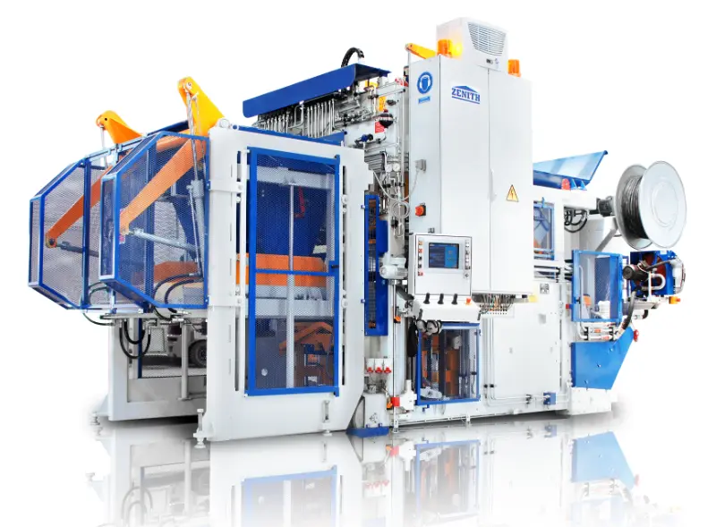 Ο κορυφαίος εξοπλισμός χύτευσης χωρίς παλέτες της ZENITH ενσωματώνει την ουσία 65 ετών γερμανικής τεχνολογίας αιχμής, γνωστής για την εξαιρετική ακρίβεια και την ακλόνητη αξιοπιστία της. Ολόκληρη η σειρά προϊόντων χρησιμοποιεί υδραυλικά και ηλεκτρικά εξαρτήματα ελέγχου από κορυφαίες διεθνείς μάρκες, με κορυφαίο επίπεδο αυτοματισμού στον κλάδο. Αυτό επιτρέπει εξαιρετικά αποδοτικές, «χαμηλού επανδρωμένων» ή ακόμη και «μη επανδρωμένων» παραγωγικών εργασιών —μειώνοντας το εργατικό δυναμικό που απαιτείται για μια παραδοσιακή γραμμή παραγωγής από πέντε χειριστές μόνο σε έναν— ενώ μειώνει το συνολικό κόστος κατά περισσότερο από 30%. Συνεπώς, αποτελεί την προτιμώμενη επιλογή εξοπλισμού για βάσεις παραγωγής δομικών υλικών υψηλής ποιότητας παγκοσμίως.