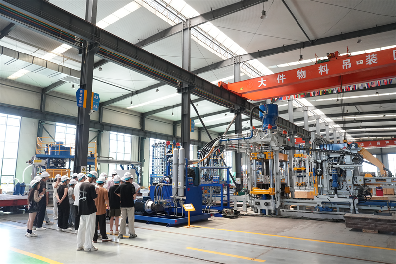 Στο εργαστήριο παραγωγής οι μαθητές παρατήρησαν από κοντά την πλήρη γραμμή παραγωγής οικολογικού τούβλου. Από την ακριβή επεξεργασία των πρώτων υλών μέχρι τη σύνθετη διαδικασία παραγωγής του τελικού προϊόντος, κάθε βήμα καταδεικνύει την αποτελεσματικότητα και την ακρίβεια της αυτοματοποιημένης παραγωγής. Ο προηγμένος εξοπλισμός παραγωγής λειτούργησε ομαλά και οι αποτελεσματικές αυτοματοποιημένες διαδικασίες βελτίωσαν σημαντικά την αποδοτικότητα της παραγωγής, ενώ ένα αυστηρό σύστημα ποιοτικού ελέγχου εξασφάλιζε υψηλή ποιότητα προϊόντος. Οι μαθητές συχνά σταματούσαν για να παρατηρήσουν, εκφράζοντας έντονο ενδιαφέρον για το σύγχρονο μοντέλο παραγωγής.