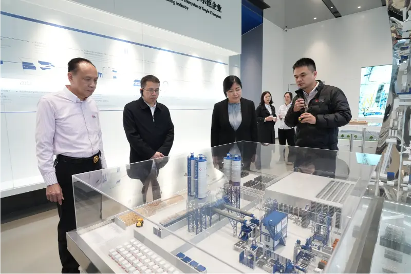 Στην περιοχή παρουσίασης δειγμάτων τούβλων, ο κ. Liu Min και η αντιπροσωπεία του εξέτασαν μια ποικιλία από φιλικά προς το περιβάλλον και πρακτικά δείγματα τούβλων ενώ άκουγαν παρουσιάσεις σχετικά με τις διαδικασίες κατασκευής προϊόντων και τα σενάρια εφαρμογής. Επαίνεσαν την Quangong Machinery Co., Ltd. για τη δέσμευσή της στην πράσινη ανάπτυξη και τις πρωτοβουλίες της για την προώθηση της αποδοτικής χρήσης των στερεών αποβλήτων, ενθαρρύνοντας την εταιρεία να αναπτύξει ακόμη περισσότερα προϊόντα που ευθυγραμμίζονται τόσο με τις κυβερνητικές πολιτικές όσο και με τις απαιτήσεις της αγοράς.