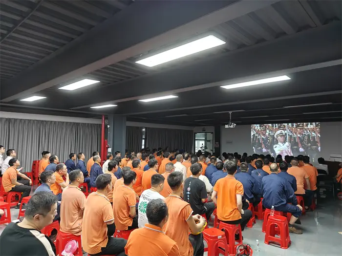Η 3η Σεπτεμβρίου ήταν μια ημέρα μεγάλης σημασίας για ολόκληρο τον κινεζικό λαό. Σε αυτήν την ιδιαίτερη μέρα, ο Πρόεδρος Fujian Quangong Machinery Co., Ltd. Fu Binghuang και ο Γενικός Διευθυντής Fu Xinyuan οδήγησαν όλους τους υπαλλήλους στην αίθουσα συνεδριάσεων της εταιρείας για να παρακολουθήσουν τη μεγάλη στρατιωτική παρέλαση και να παρακολουθήσουν αυτή τη συναρπαστική ιστορική στιγμή.