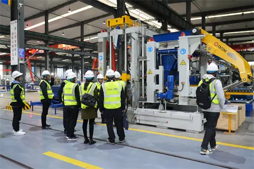 Εισάγοντας το ευφυές εργαστήριο παραγωγής του QMG, οι επισκέπτες παρατήρησαν την πλήρως αυτόματη μηχανή σχηματισμού μπλοκ κοντά. Το σώμα του μηχανήματος ζυγίζει εκατοντάδες τόνους, το υδραυλικό σύστημα με μετάδοση ακριβείας, τη μονάδα μούχλας με προσαρμόσιμη αλλαγή ... "Αυτός ο εξοπλισμός προσαρμόζεται γρήγορα στις ανάγκες των πελατών μέσω του Modular Design. «